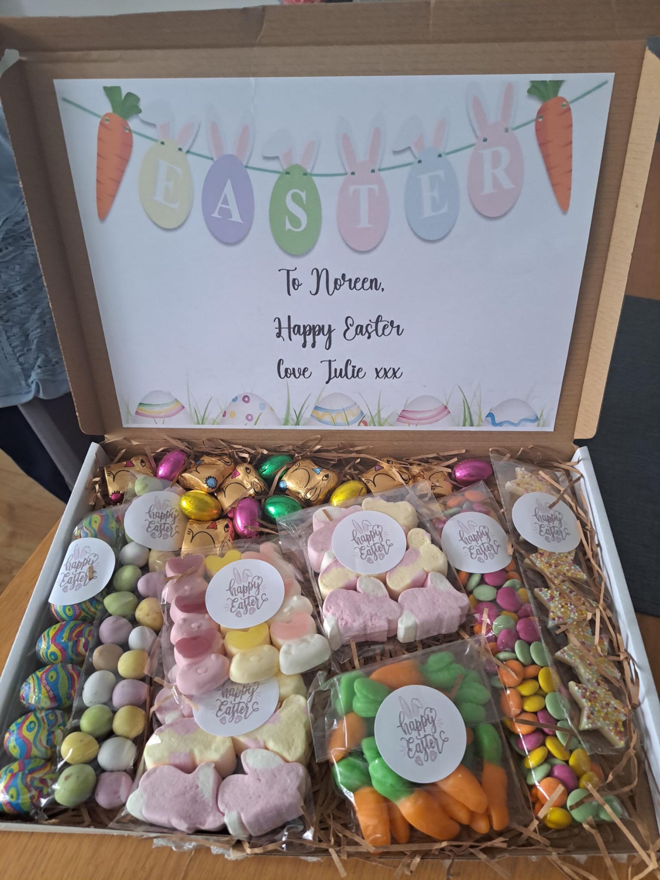 James BaxterMy grandson really loved this Easter box of sweets. Sarah the seller was so helpful when I wanted it later than the stipulated d... Read MoreMy grandson really loved this Easter box of sweets. Sarah the seller was so helpful when I wanted it later than the stipulated delivery date. I would highly recommend Sarah and her gifts. HidePosted on